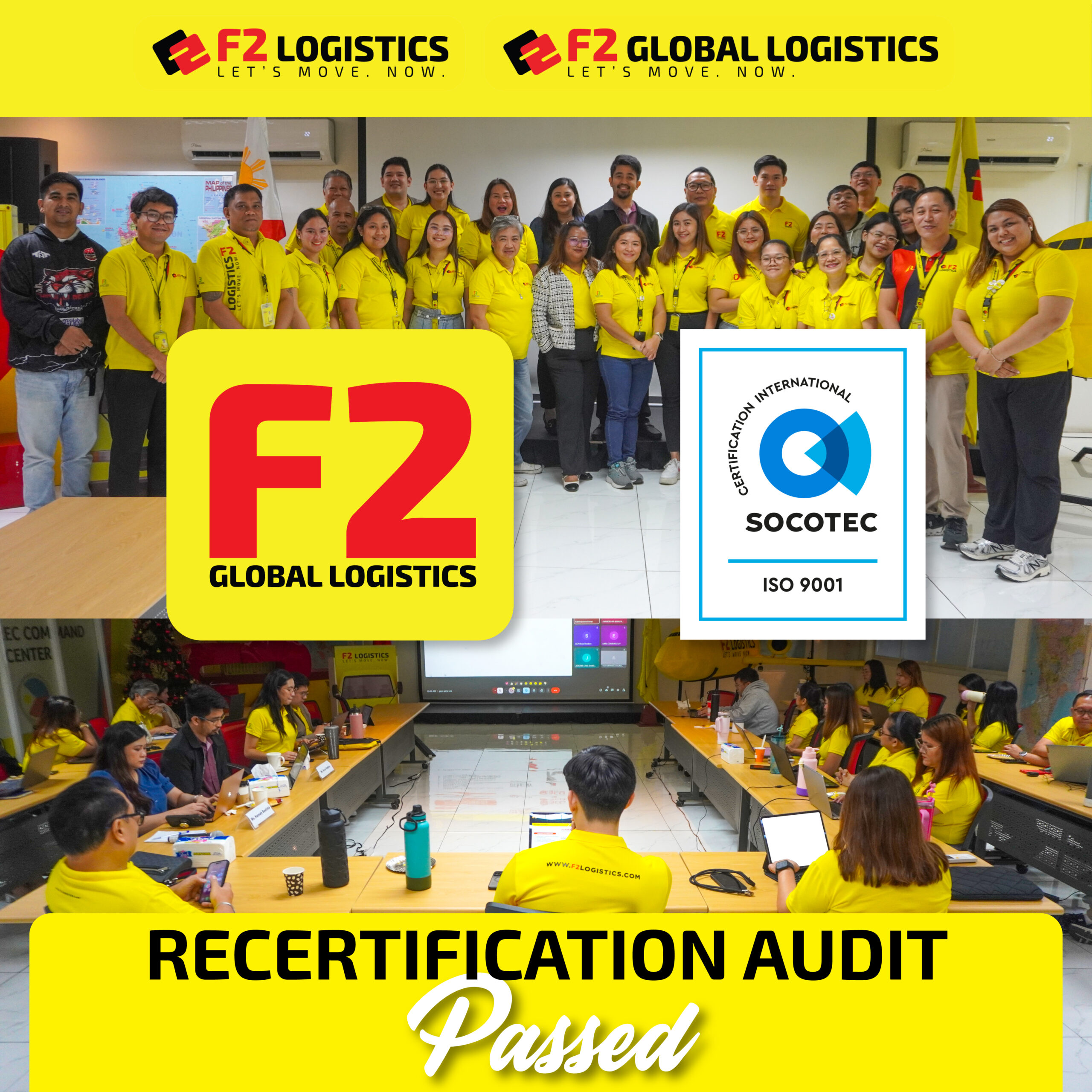 F2 Global Logistics, Inc. once again passed the Recertification Audit and has been recommended for continued ISO 9001:2015 Certification.